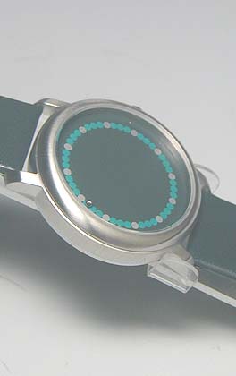 ダイヤルの上で小さなボールが時間を刻むアバカス腕時計です。