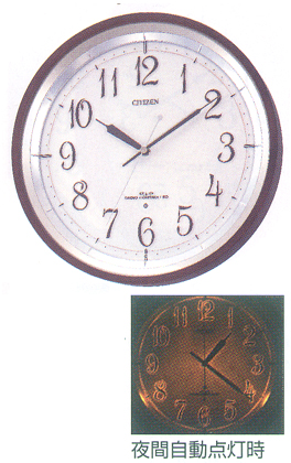 関東局(40kHz)と九州局(60kHz)から発信される日本標準時刻電波のうち、より受信しやすい電波を自動的に受信し、自動で時刻を修正する電波機能を搭載した、薄茶メタリック塗装のプラスチック枠の掛け時計です。