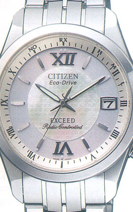 薄型デイト付きエコ・ドライブ電波時計ムーブメント「H110」を搭載したCITIZEN(シチズン)の高級ソーラー電波時計エクシード(EXCEED)メンズ腕時計EBG742403