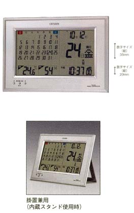 日本標準時刻電波を受信し自動で時刻を合わせるデジタル電波掛け時計シチズン(CITIZEN)パルデジットカレンダーL 8RZ105003掛置き兼用のトケイです。(内臓スタンド使用時)