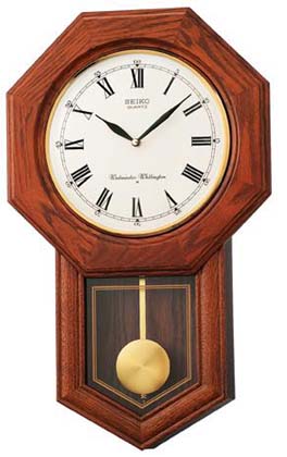 余韻のある美しい音色が特徴の電子音チャイムによる報時をする木枠の柱時計